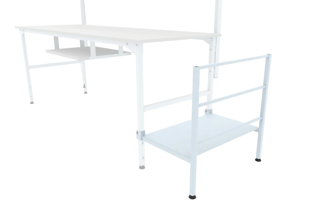 Blat wykonany z laminowanej płyty wiórowej 18 mm z okleiną ABS jest odporny na uszkodzenia mechaniczne i łatwy do utrzymania w czystości. Półka montowana jest szybko i intuicyjnie – po lewej lub prawej stronie stołu – zgodnie z preferencjami użytkownika. Dzięki temu stanowisko pracy zyskuje dodatkową funkcjonalność i porządek.