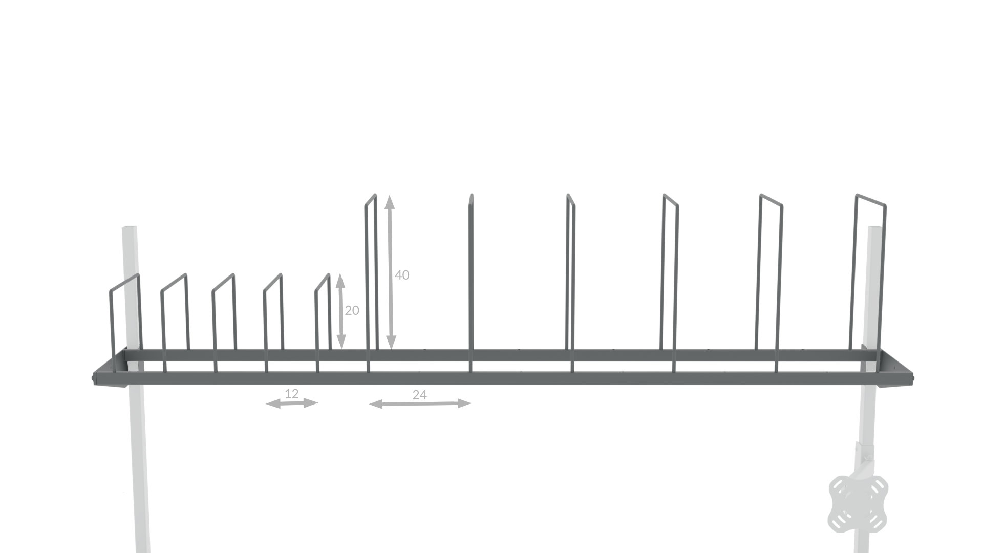 Wyposażona w 5 aluminiowych przegród o wysokości 200 lub 400 mm, półka umożliwia magazynowanie zarówno małych, jak i większych kartonów, które zawsze są w zasięgu ręki. Dzięki możliwości regulacji rozstawu przegród co 120 mm, organizacja przestrzeni jest w pełni elastyczna i dopasowana do aktualnych potrzeb.
