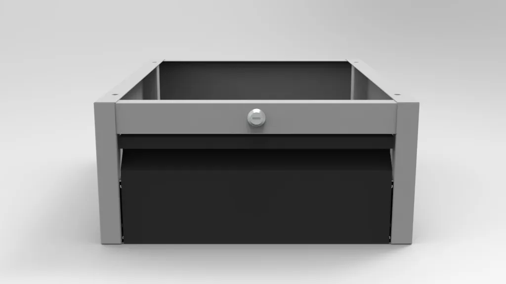 Prowadnice kulkowe z pełnym wysuwem zapewniają płynne działanie i pełny dostęp do wnętrza, a zamek z dwoma kluczami chroni zawartość w środowisku zmianowym lub przy stanowiskach samoobsługowych.