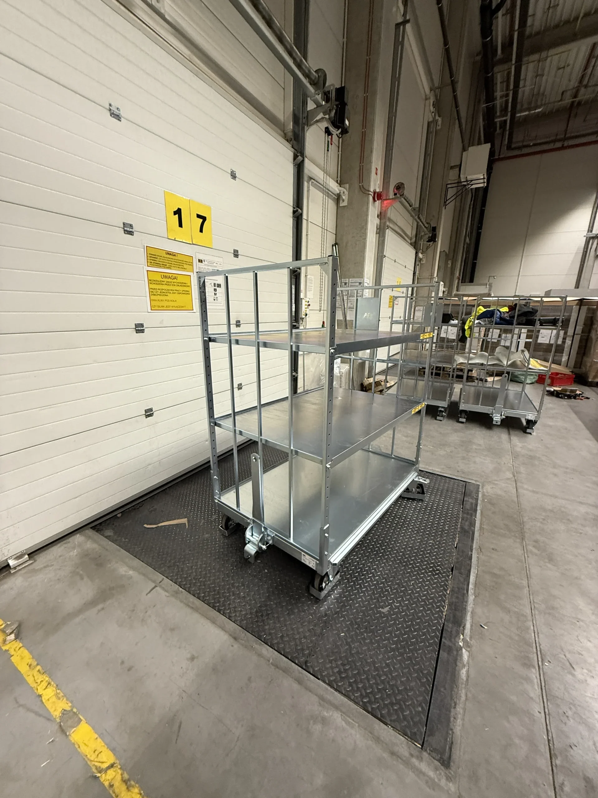 Transportowane komponenty miały znaczny ciężar i nieregularny rozkład masy. Standardowe półki konkurencyjnych wózków wyginały się lub pękały, co prowadziło do konieczności ich częstej wymiany.