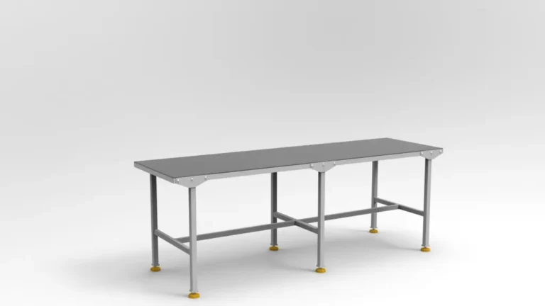 Standardowe stoły wytrzymują 300 kg obciążenia statycznego. Wersja Heavy-Duty (profil 40 × 40 × 2 mm) podnosi udźwig do 500 kg; opcjonalnie możemy zastosować rozpórki krzyżowe dla jeszcze większej sztywności. Posiadamy również rozwiązania z wytrzymałością do 1000 kg i więcej.