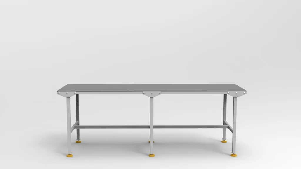 Szkielet stołu wykonano z profili stalowych 40×40×3 mm oraz 40×30×2 mm, co zapewnia wyjątkową sztywność i stabilność nawet przy maksymalnym obciążeniu 600 kg.