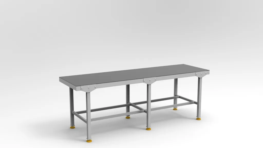 Wysokość robocza stołu wynosi 900 mm, a dzięki wibroizolacyjnym stopkom konstrukcja jest stabilna nawet na nierównym podłożu.