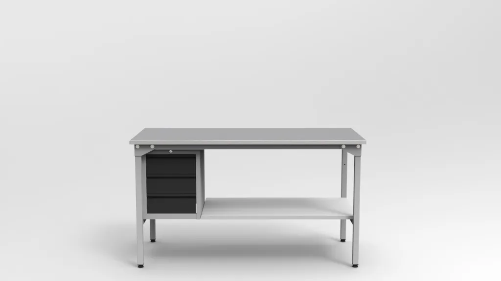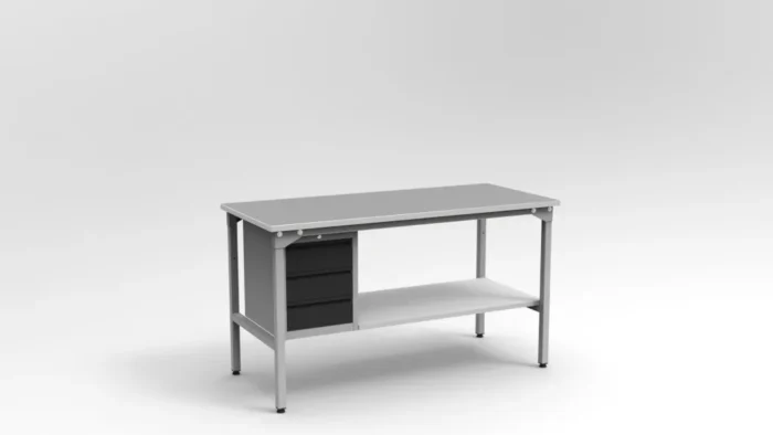 Zamykana szafka z 3 szufladami (SC-006) i półka dolna o nośności 100 kg umożliwiają lepszą organizację miejsca pracy. Otwory M6 w ramie pozwalają na montaż dodatkowych akcesoriów, np. nadbudów i oświetlenia LED.